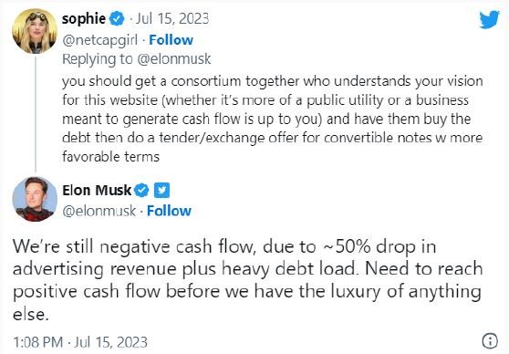 當(dāng)?shù)貢r(shí)間上周六,埃隆·馬斯克表示,受廣告收入下降近 50% 和沉重的債務(wù)負(fù)擔(dān)影響,推特現(xiàn)金流仍然為負(fù),未達(dá)到他 3 月份做出的“推特將在 6 月份實(shí)現(xiàn)現(xiàn)金流為正”的預(yù)期。