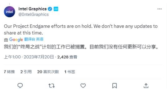 英特爾官方推特賬號(hào) Intel Graphics 在回復(fù)網(wǎng)友提問時(shí),明確表示已經(jīng)擱置 Project Endgame 項(xiàng)目,現(xiàn)階段沒有任何更新可以分享。