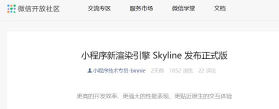 微信開放社區(qū)官方人員日前宣布,微信小程序新渲染引擎 Skyline 已發(fā)布正式版,進(jìn)一步提升小程序的渲染性能和體驗(yàn)。