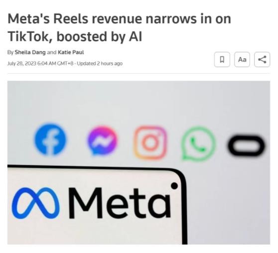 據(jù)路透社報道,Meta 周三公布的數(shù)據(jù)顯示,Reels 視頻的用戶和廣告商增長迅猛,并且正在迅速趕上字節(jié)跳動旗下的 TikTok。