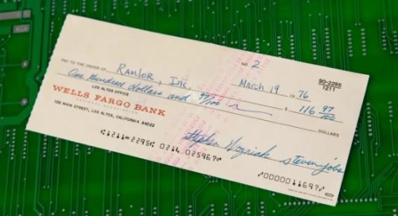 據(jù)介紹,這張支票是蘋果公司于 1976 年 3 月 19 日開出的,金額為 116.97 美元(IT之家備注:當(dāng)前約 838 元人民幣),抬頭為 Ramlor, Inc. 這是一家位于帕洛阿爾托的印刷電路板制造商。這張支票是蘋果公司開設(shè)第一個(gè)銀行賬戶后發(fā)出的臨時(shí)支票,編號(hào)為“2”,它比蘋果公司正式成立的日期還要早 13 天。當(dāng)時(shí),喬布斯、沃茲尼亞克和羅納德?韋恩三人在 4 月 1 日簽署了合伙協(xié)議,正式創(chuàng)立了蘋果電腦公司。根據(jù)協(xié)議,兩位史蒂夫各持有公司 45% 的股份,韋恩持有 10% 的股份。此外,協(xié)議還規(guī)定任何超過 100 美元的支出都需要兩位合伙人的批準(zhǔn) —— 這也許是為什么這張支票需要喬布斯和沃茲尼亞克兩人的簽名的原因?;谶@張支票的日期,有理由推測(cè)它與第一臺(tái) Apple-1 電腦有關(guān)。Apple-1 是蘋果公司推出的第一款個(gè)人電腦,當(dāng)時(shí)只是作為一個(gè)電路板套件供愛好者自行焊接。后來,在加州山景城的 The Byte Shop 商店老板保羅?特雷爾的建議下,蘋果公司開始提供組裝好的電腦。這張支票的起拍價(jià)為 5 萬美元以上,截止日期為 8 月 24 日。