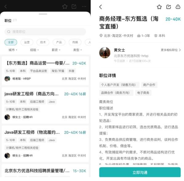 在部分招聘網(wǎng)站上,東方甄選已經(jīng)掛出淘寶直播相關(guān)招聘信息,組建包括對(duì)接淘寶直播的商務(wù)經(jīng)理、視覺(jué)設(shè)計(jì)師、選品經(jīng)理等運(yùn)營(yíng)團(tuán)隊(duì)。此外,東方甄選也在整合淘寶平臺(tái)商家資源,一些品牌商家已經(jīng)收到合作邀約。
