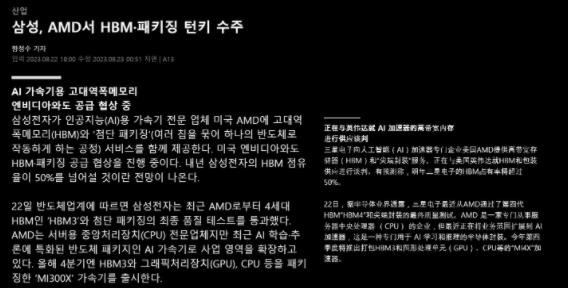 據(jù)外媒 hankyung 消息,AMD 已與三星電子達(dá)成協(xié)議,三星的 HBM3 內(nèi)存和封裝技術(shù)將被 AMD MI300X GPU 采用,外媒預(yù)計(jì)明年三星電子將在 HBM 市場(chǎng)獲得 50% 的份額。