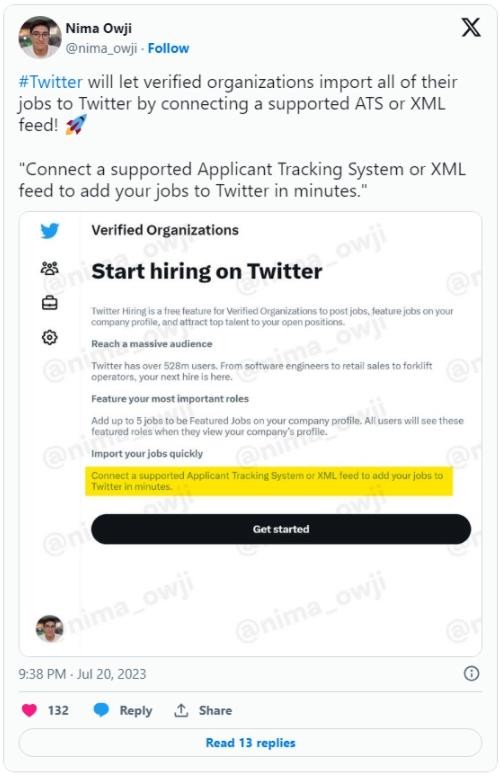 X 公司已經(jīng)邀請(qǐng)多家企業(yè)入駐,支持 ATS 或者 XML 格式導(dǎo)入招聘信息,官方表示整個(gè)過程只需要幾分鐘就能完成,聲稱可以幫助企業(yè)擴(kuò)大招聘面,吸引更多人才。