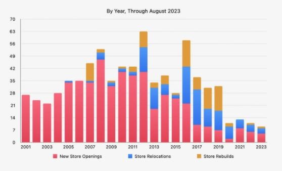 根據(jù) Facades 應(yīng)用開發(fā)者 Michael Steeber 發(fā)布的最新博文,截至今年 8 月,蘋果公司今年開設(shè)了 8 家新店。而在 2022 年全年蘋果才開設(shè)了 6 家新店;2021 年全年開設(shè)了 8 家新店。