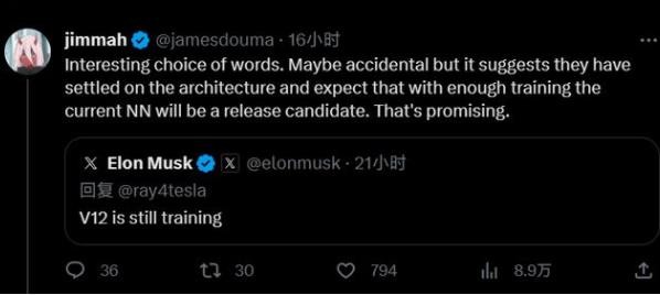 馬斯克昨日在 X 平臺回應一位用戶提出的有關(guān)特斯拉公司“何時能夠正式推出 FSD V12 版本”時表示,“FSD V12 正在訓練中,而訓練計算很快將不再是一個限制因素。”