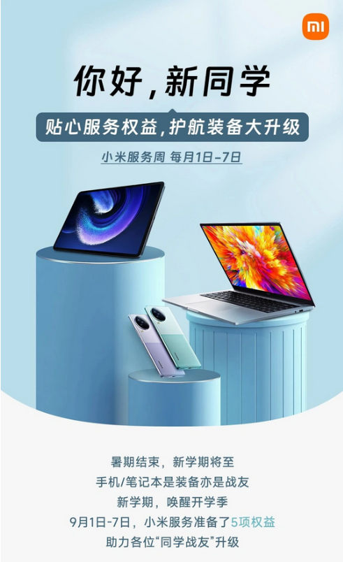 小米推出新生開(kāi)學(xué)季活動(dòng):0 元手機(jī)清潔,平板等硬件保險(xiǎn) 6 折購(gòu) 08:44:33