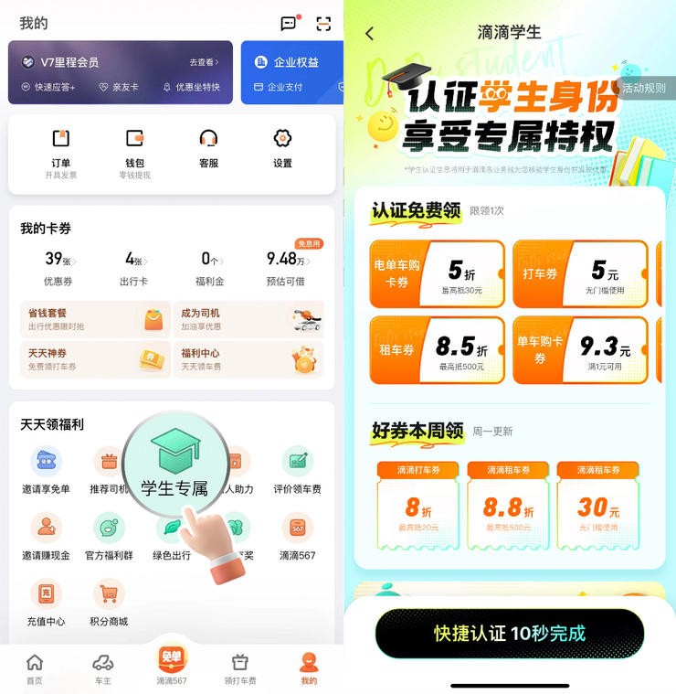 用戶可從滴滴出行 App 個(gè)人中心“學(xué)生專屬”進(jìn)入學(xué)生頁面完成學(xué)生認(rèn)證