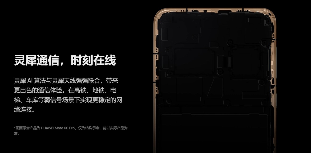 通信方面,這一次華為 Mate 60 Pro 更進(jìn)一步,靈犀 AI 算法與靈犀天線強(qiáng)強(qiáng)聯(lián)合,在高鐵、地鐵、電梯、車庫等弱信號場景下帶來更出色更穩(wěn)定的通信體驗(yàn)。