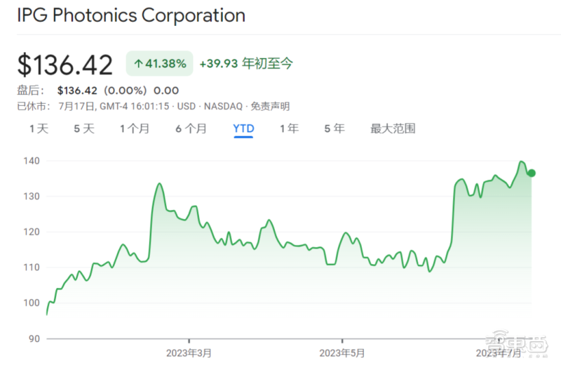 ▲年初至今 IPG 光電股價(jià)走勢(shì),來(lái)源:谷歌財(cái)經(jīng)