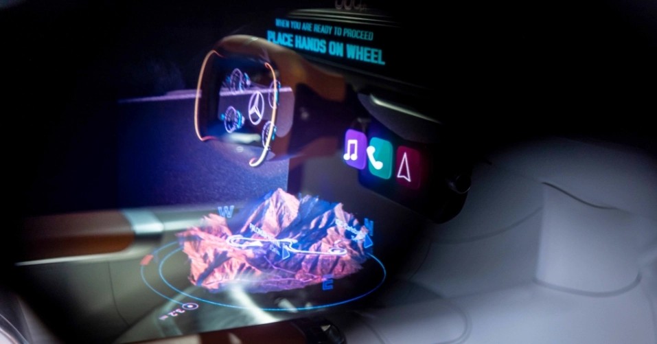 其配備有一條細(xì)長(zhǎng)的像素風(fēng)車機(jī)屏幕,用以顯示車輛時(shí)速等核心信息,奔馳官方將這種設(shè)計(jì)稱之為“復(fù)古未來(lái)主義的 8-bit 像素風(fēng)格”,奔馳還與 Magic Leap 進(jìn)行合作,佩戴 Magic Leap 2 AR 眼鏡,還會(huì)在車內(nèi)實(shí)時(shí)顯示 AR 地圖、可交互按鈕、虛擬儀表盤等內(nèi)容。