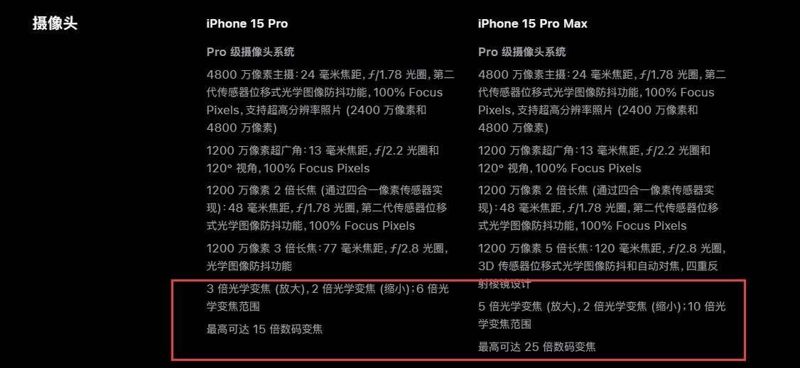 更何況,5 倍光學變焦還是 iPhone 15 Pro Max 獨有的功能,iPhone 15 Pro 及以下定位機型根本沒有。