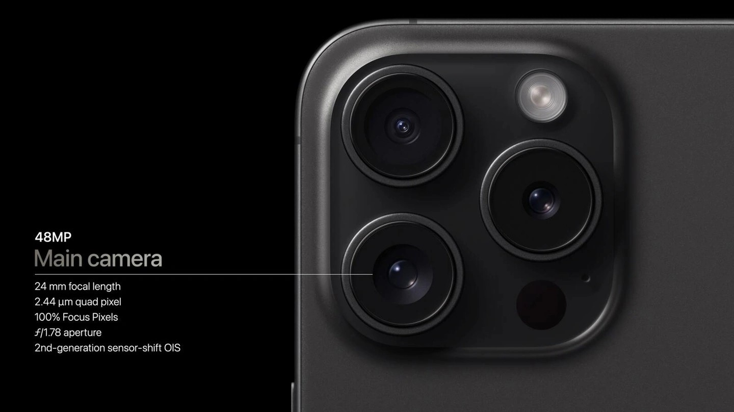 蘋果今天發(fā)布的 iPhone 15 Pro 系列機型配備了升級的相機系統(tǒng),例如更大更先進的 48MP 主攝,還有可減少鏡頭眩光的新涂層等等。