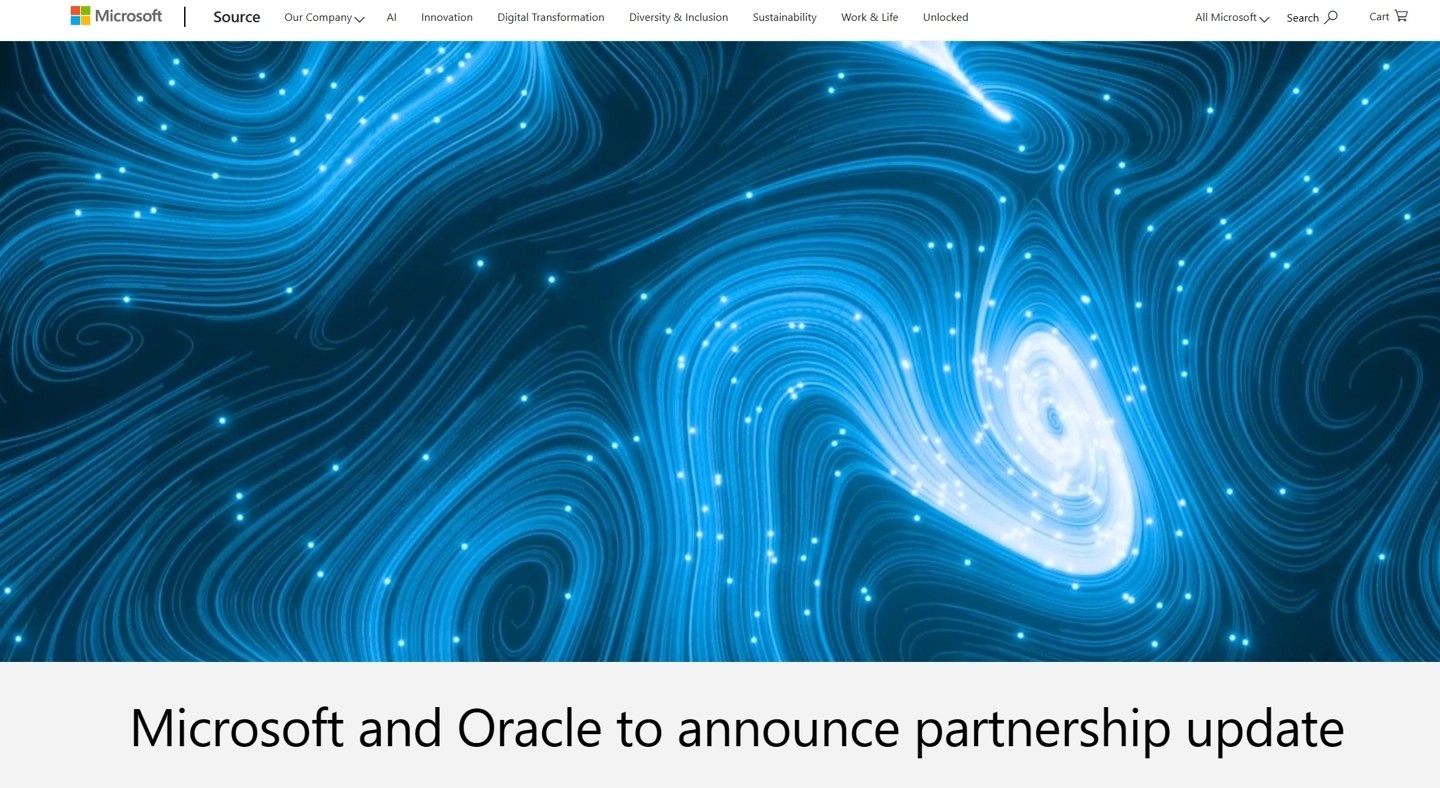 微軟官網(wǎng)日前上線了一則媒體公告,微軟和甲骨文(Oracle)將于當(dāng)?shù)貢r(shí)間 9 月 14 日星期四下午 1 點(diǎn)(注:北京時(shí)間 9 月 15 日凌晨 5 點(diǎn))發(fā)布最新的合作消息。