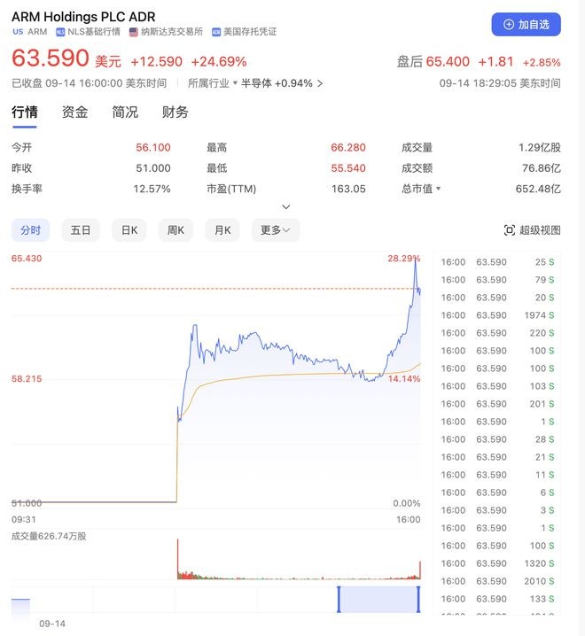 年內(nèi)最大IPO來了!Arm上市首日大漲近25%,市值超650億美元 09:23:36