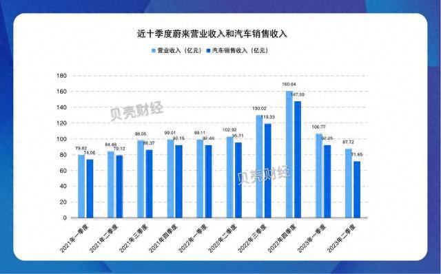 近十季度蔚來營業(yè)收入和汽車銷售收入。圖片來源網(wǎng)絡(luò)/侵刪