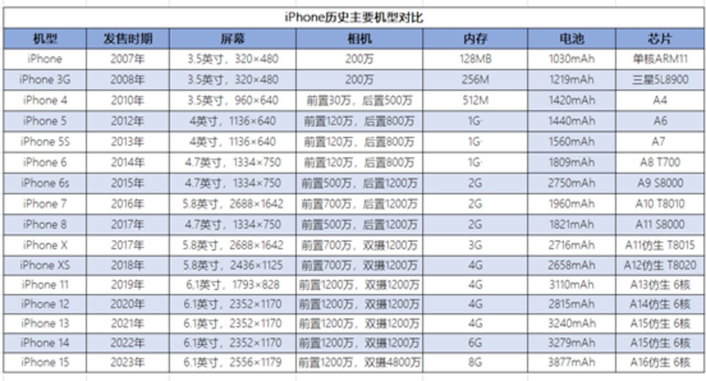 圖:iPhone 歷史主要機(jī)型對(duì)比