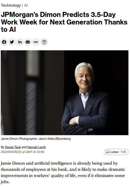 據(jù)彭博社昨日晚間報道,摩根大通 CEO Jamie Dimon 在昨日接受彭博 TV 采訪時談及自己對 AI 的看法。