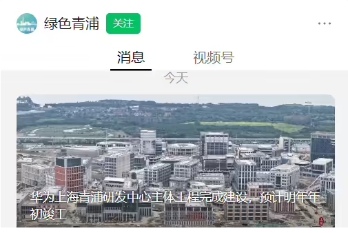 上海市青浦區(qū)官方“綠色青浦”公眾號(hào)發(fā)布消息,近日,華為上海青浦研發(fā)中心進(jìn)入全面機(jī)電管線安裝工作,主體工程全部完成建設(shè)。