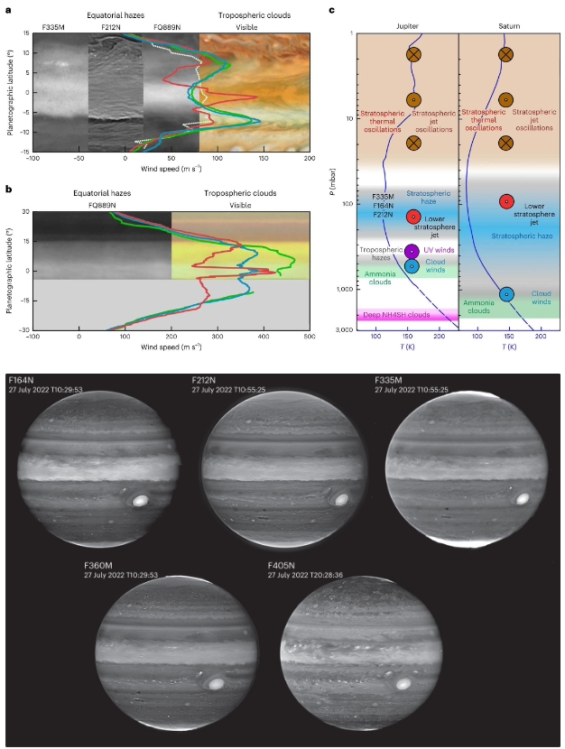 韋伯望遠(yuǎn)鏡早期發(fā)布的科學(xué)計(jì)劃由加州大學(xué)柏克萊分校天文學(xué)家 Imke de Pater、巴黎天文臺(tái)天文學(xué)家 Thierry Fouchet 共同領(lǐng)導(dǎo),旨在每隔 10 小時(shí)(木星的 1 天)用 4 種不同濾鏡拍攝木星照片,每種濾鏡都能檢測(cè)木星大氣層不同高度的微小特征變化。