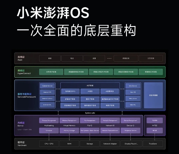 雷軍再度發(fā)表長(zhǎng)文預(yù)熱小米澎湃 OS,正式公布了完整系統(tǒng)架構(gòu)。