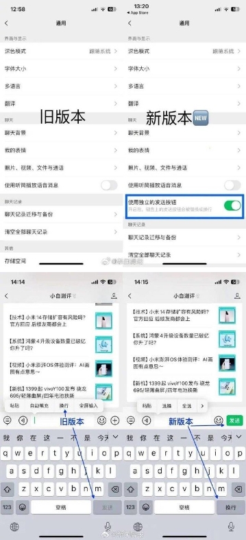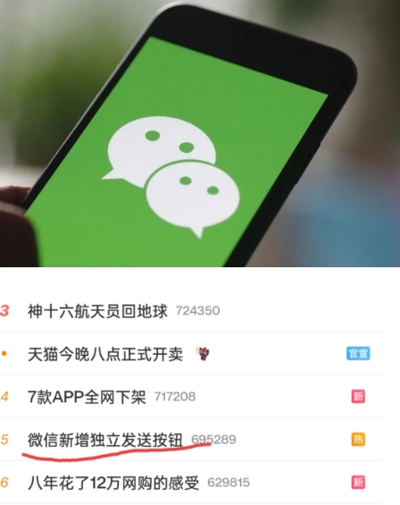 “微信新增獨立發(fā)送按鈕”這一詞條登上了微博熱搜,并且高居榜單第五,這讓不少人有些納悶。不過點開后才發(fā)現(xiàn),原來是iOS端微信迎來了一次“史詩級”更新。