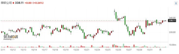 該行分析師給予微軟“增持”評(píng)級(jí),目標(biāo)價(jià)為 425 美元。截至周二收盤,微軟股價(jià)日內(nèi)扭跌轉(zhuǎn)漲,報(bào)每股 338.11 美元。