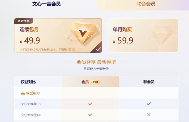 百度大模型文心一言現(xiàn)已推出會員模式,開通后可解鎖文心大模型 4.0。