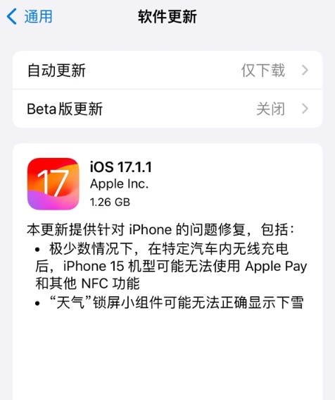 更新修復了在極少數(shù)情況下,在特定汽車內無線充電后,iPhone 15機型可能無法使用Apple Pay和其他NFC功能。
