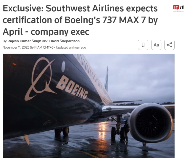 據(jù)路透社報道,西南航空一位高管透露,波音 737 MAX 7 飛機(jī)將于 2024 年 4 月獲得美國聯(lián)邦航空管理局的認(rèn)證,并將于 10-11 月開始投入運(yùn)營。