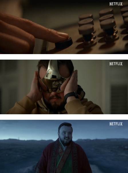 在原著中,《三體》是一款身臨其境的虛擬現(xiàn)實(shí)游戲。在預(yù)告片中,杰克?魯尼(約翰?布拉德利飾)和金城(杰西?洪飾)都不了解這款虛擬現(xiàn)實(shí)裝置,杰克佩戴后置身于一個(gè)非常真實(shí)的環(huán)境,這時(shí)一個(gè)陌生的女人(下岡海飾)突然出現(xiàn),朝他揮舞長(zhǎng)劍。