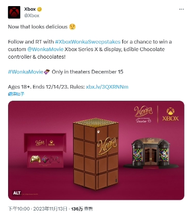 此外,該聯(lián)名產品還包括一款可食用的 Xbox 手柄,號稱“由 100% 純巧克力制成,并包裹在標志性的金色包裝紙中”,也是很契合電影中的巧克力設定了。