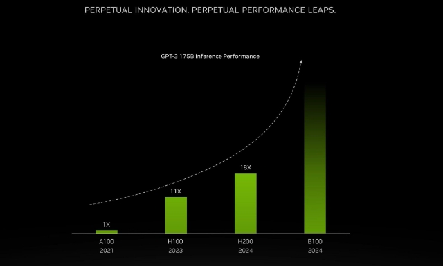 英偉達(dá)還透露,下一代Blackwell B100 GPU也將在2024年推出,性能已經(jīng)“望不到頭”。