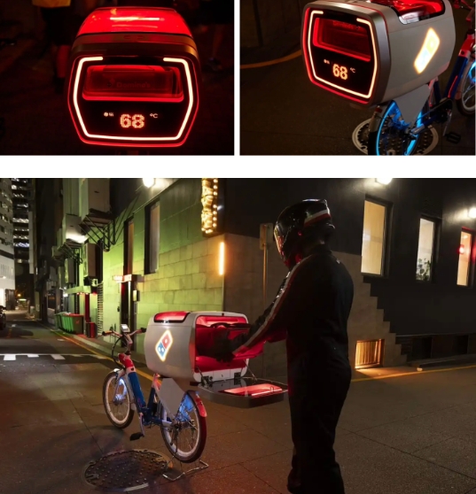 這款電動自行車擁有 20 英寸城市車胎,集成在車架中的電池,擁有點陣電顯屏用于顯示溫度及提醒后方用戶,據(jù)稱將很快投入于澳大利亞等地的達(dá)美樂送餐運營中。