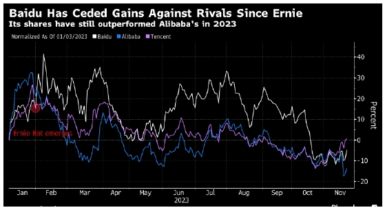 該公司今年交出了中國(guó)對(duì)于OpenAI的ChatGPT的第一份重要“答卷”,引發(fā)阿里巴巴、騰訊控股等國(guó)內(nèi)同行紛紛參與競(jìng)爭(zhēng),展示各自的生成式AI平臺(tái)。百度的“文心一言”在發(fā)布后的三個(gè)月內(nèi),斬獲7000萬(wàn)用戶,公司宣稱其開發(fā)的模型在一般能力方面已經(jīng)可以和GPT-4相媲美。