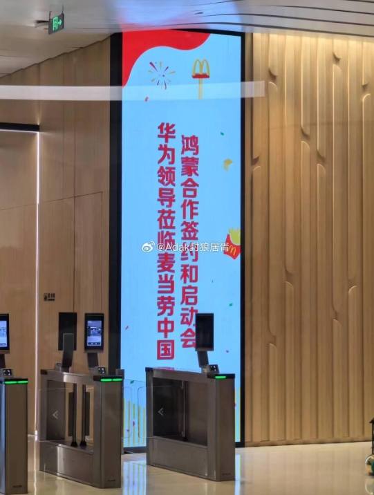 該博主分享的照片顯示,華為與麥當(dāng)勞中國舉行了鴻蒙合作簽約和啟動會活動。不過,官方暫未對外公布這一消息。