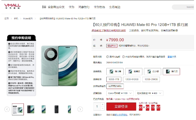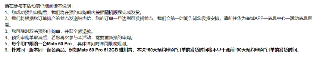 官方還特別指出,針對同一版本同一顏色商品,例如 Mate 60 Pro 512GB 雅川青,本次“60 天預約申購”訂單的發(fā)貨時間將不早于此前“90 天預約申購”訂單的發(fā)貨時間。