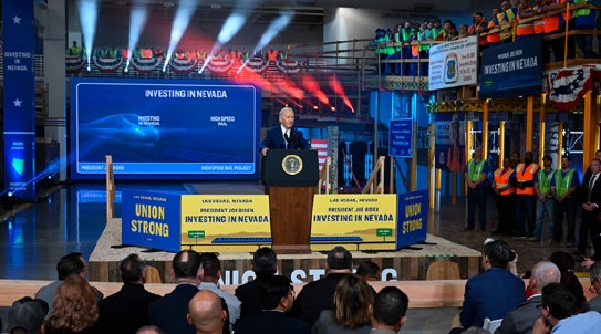 拜登在活動上春風(fēng)滿面地宣布,“終于,我們要修建美國歷史上的首條高鐵項(xiàng)目了。我們正在攜手推動連接拉斯維加斯和洛杉磯的高鐵項(xiàng)目變成現(xiàn)實(shí)。”