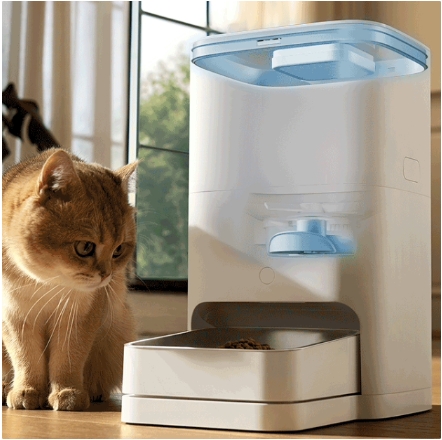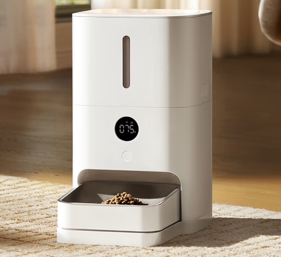 這款產(chǎn)品配備 5L 儲糧桶,可一次性放入約 2.5kg 貓糧,供一只成年貓咪吃 30 天;配備稱重喂食碗,實時檢測碗內(nèi)余糧,重量誤差不超過 1g;搭配自研算法,動態(tài)計算寵物進食克數(shù)。