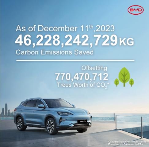 而最新數(shù)據(jù)顯示,截止2023年12月11日,比亞迪減少碳排放超過(guò)462萬(wàn)噸,相當(dāng)于種植超7.7億棵樹(shù)。