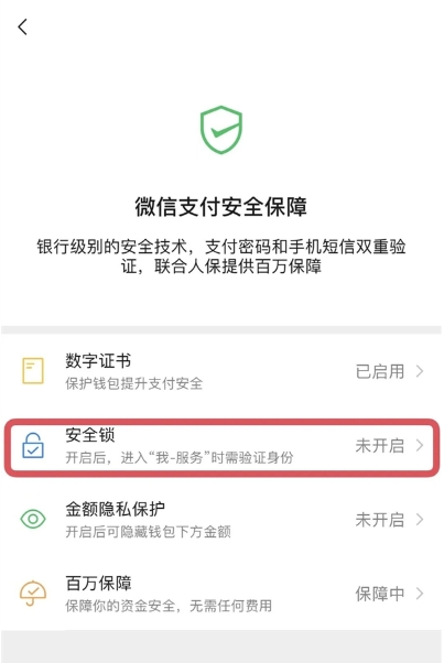 設置方式:用戶可通過【服務】-【錢包】-【消費者保護】-【安全保障】-【安全鎖】內(nèi)設置使用面容、指紋或手勢密碼。