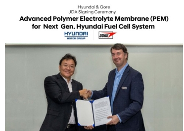 近日,現(xiàn)代汽車和起亞在韓國麻浦環(huán)保研發(fā)中心(Mabuk Eco-Friendly R&D Center) 與 W. L. Gore & Associates(戈爾公司)簽訂協(xié)議,共同開發(fā)用于氫燃料電池系統(tǒng)的先進質(zhì)子交換膜(PEM)。