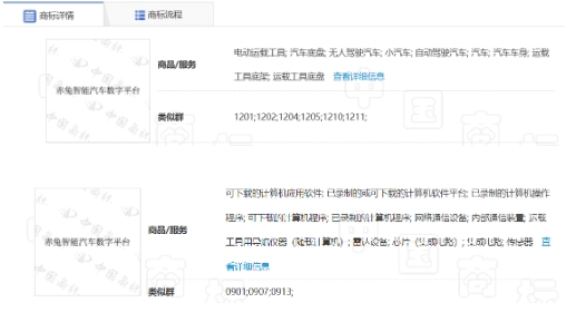 這枚商標(biāo)分類不僅包含網(wǎng)絡(luò)通信設(shè)備、 芯片(集成電路)、 集成電路等,還包含電動(dòng)運(yùn)載工具、汽車底盤、無(wú)人駕駛汽車、小汽車、自動(dòng)駕駛汽車、汽車車身、運(yùn)載工具底架、運(yùn)載工具底盤等商品 / 服務(wù)。