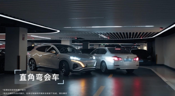 遇到直角彎、極窄路等會(huì)車時(shí),車輛會(huì)智能判斷安全距離并會(huì)車通過。