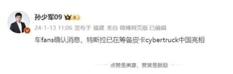 曝特斯拉Cybertruck將在國(guó)內(nèi)亮相:三種版本可供選擇 10:21:28