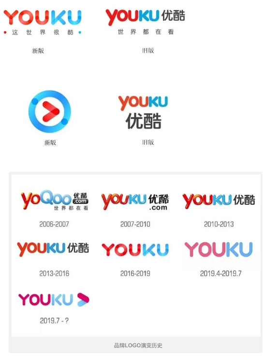 優(yōu)酷自成立至今已經(jīng)多次更換 logo,例如: