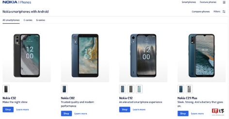 ▲ 諾基亞官網(wǎng)“nokia.com/phones”手機(jī)板塊頁面