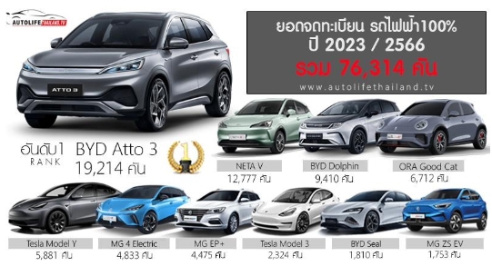 《泰國汽車生活》統(tǒng)計數(shù)據(jù)顯示,泰國 2023 年最受歡迎的 10 款電動汽車分別為: