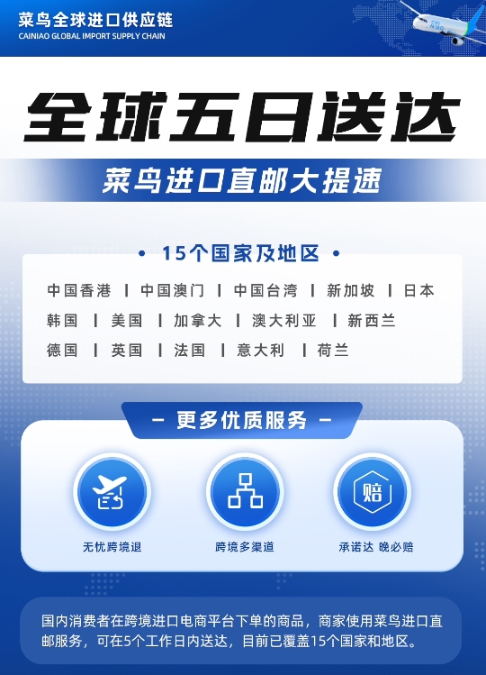 菜鳥進(jìn)口直郵提速,全球 15 個(gè)國家和地區(qū)商品 5 日送達(dá)內(nèi)地 09:39:41