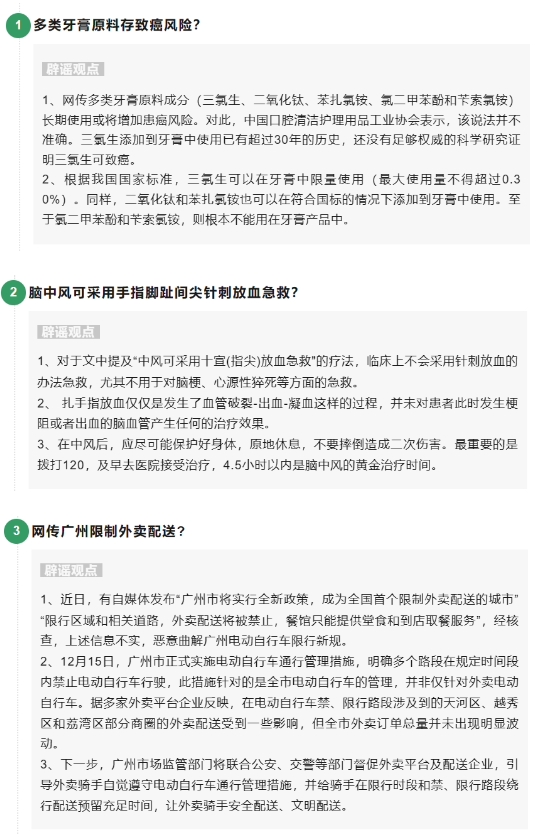微信 12 月打擊處理 3555 篇不實(shí)文章,十大謠言包括“網(wǎng)傳廣州限制外賣配送” 09:53:18